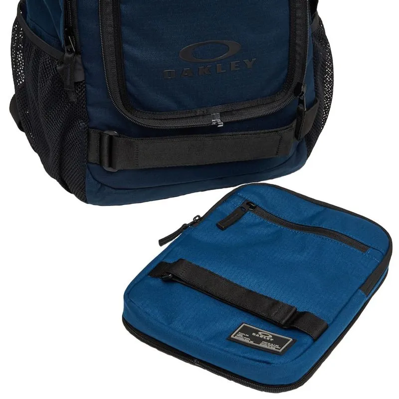 From city commuting to trekking, the Multifunctional Smart Backpack has an array of performance features to take you and your gear in dependable style. Rugged exterior and recycled water repellent-coated Nylon deliver protection from the elements, while a large back pocket and detachable, zippered iPad case with crossbody strap and two front zippered pockets hold essentials. This gear-friendly backpack includes breathable mesh fabric on padded shoulder straps for added comfort, and it’s finished with a branded lining and rubberized Oakley logo patch on front.